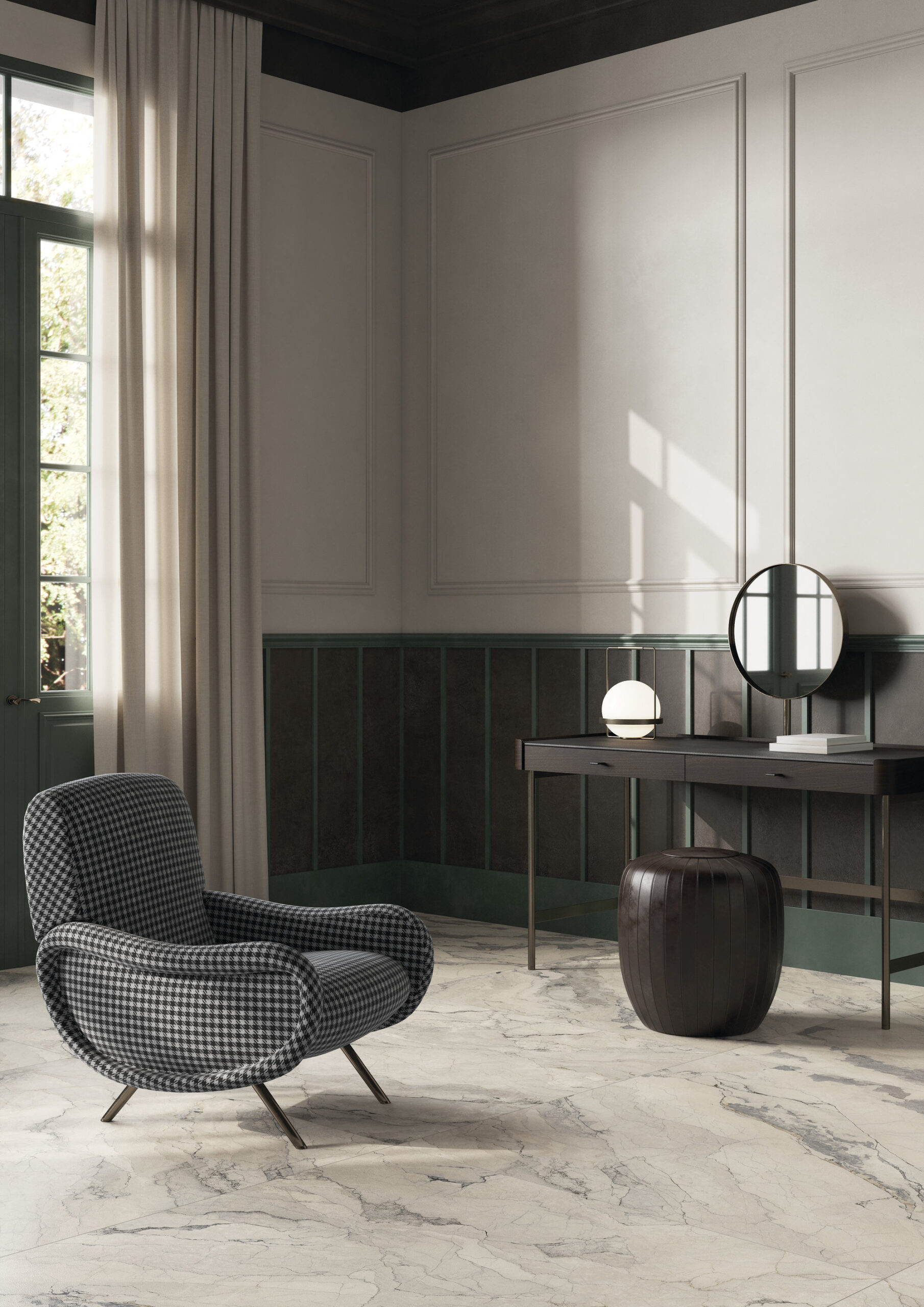 Raffinement, sobriété et pure élégance : Camouflage Maximum se distingue dans les espaces, les transformant. Ses veines nettes, parfois estompées dans les zones d’ombre, apportent profondeur aux intérieurs, équilibrant ombre et lumière et donnant naissance à des émotions toujours nouvelles. Sa luminosité est idéale pour les réalisations les plus prestigieuses, pour les sols, revêtements et façades extérieures, mais aussi pour sublimer le mobilier. Disponible en formats classiques et Maximum.