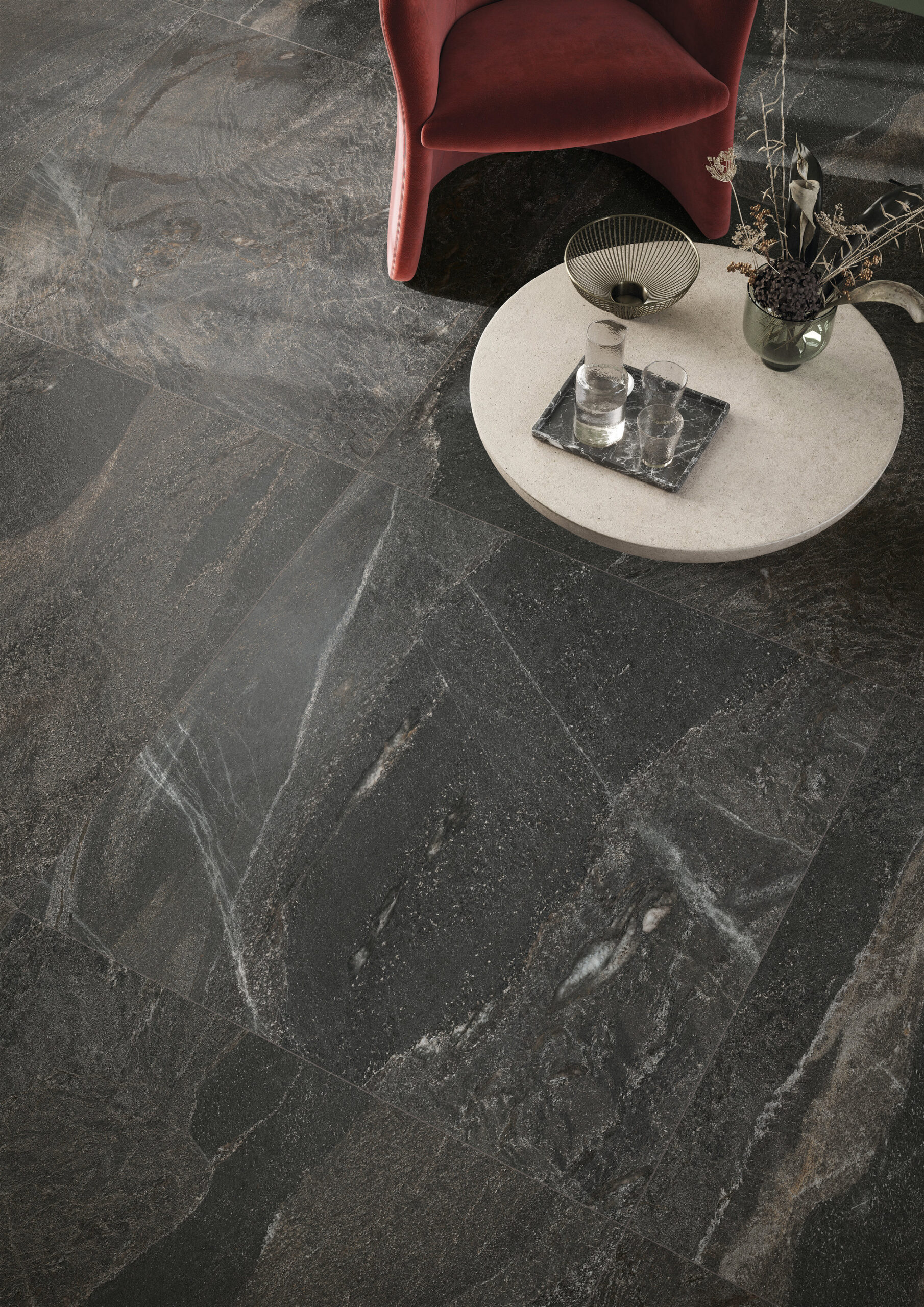 Un voyage à travers la matière, ponctué de touches de lumière. Jatoba Brown est une surface sophistiquée, avec un fond brun foncé traversé de veines plus claires aux tons chauds et ferrugineux. Elle évoque le bois et ses reflets dorés, qui illuminent et enrichissent la texture. Mise en valeur par la finition lappée, offrant un agréable contraste brillant-mat, Jatoba Brown est idéale pour les sols et les revêtements, ainsi que pour les façades extérieures. Disponible en formats classiques et Maximum.
