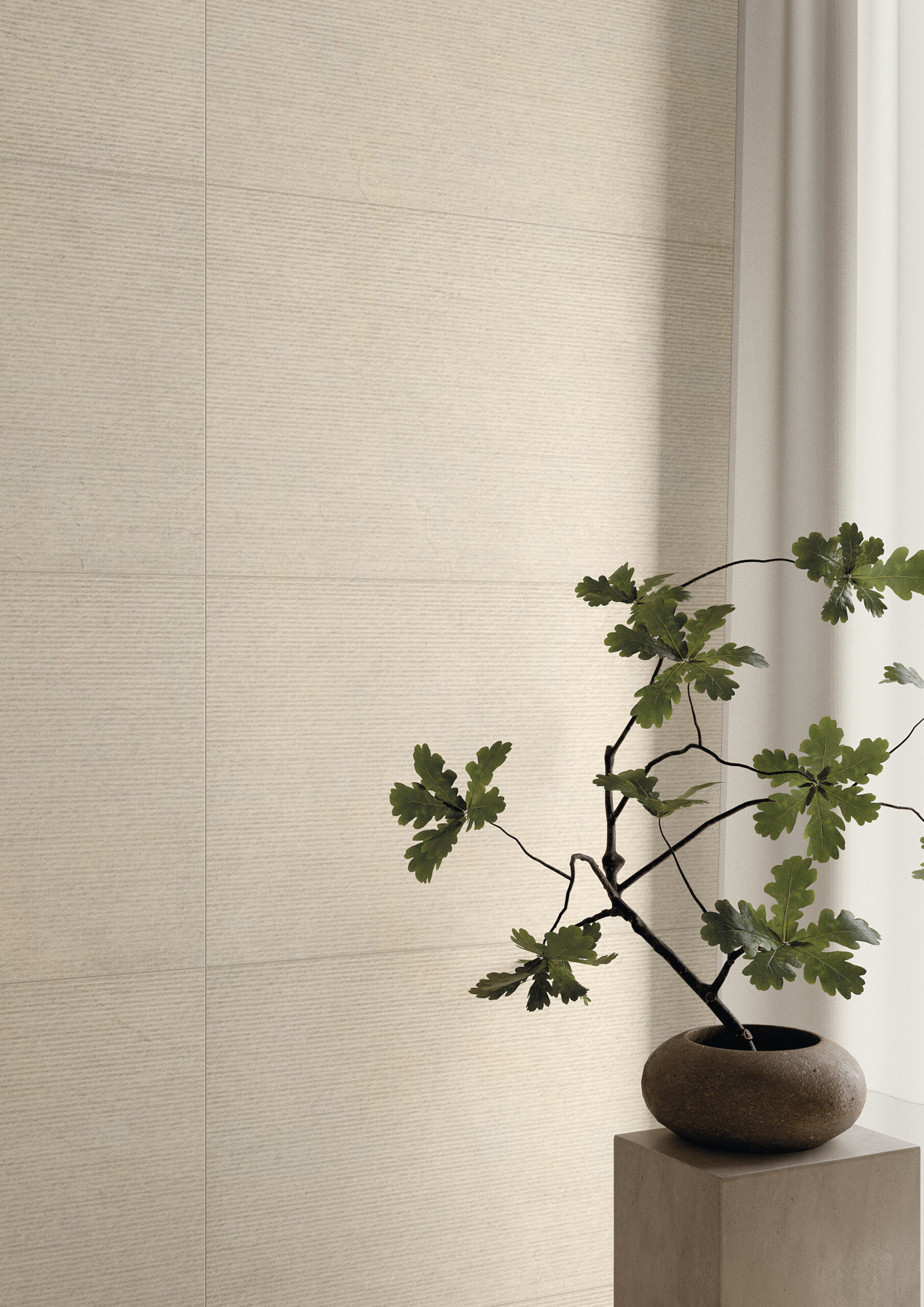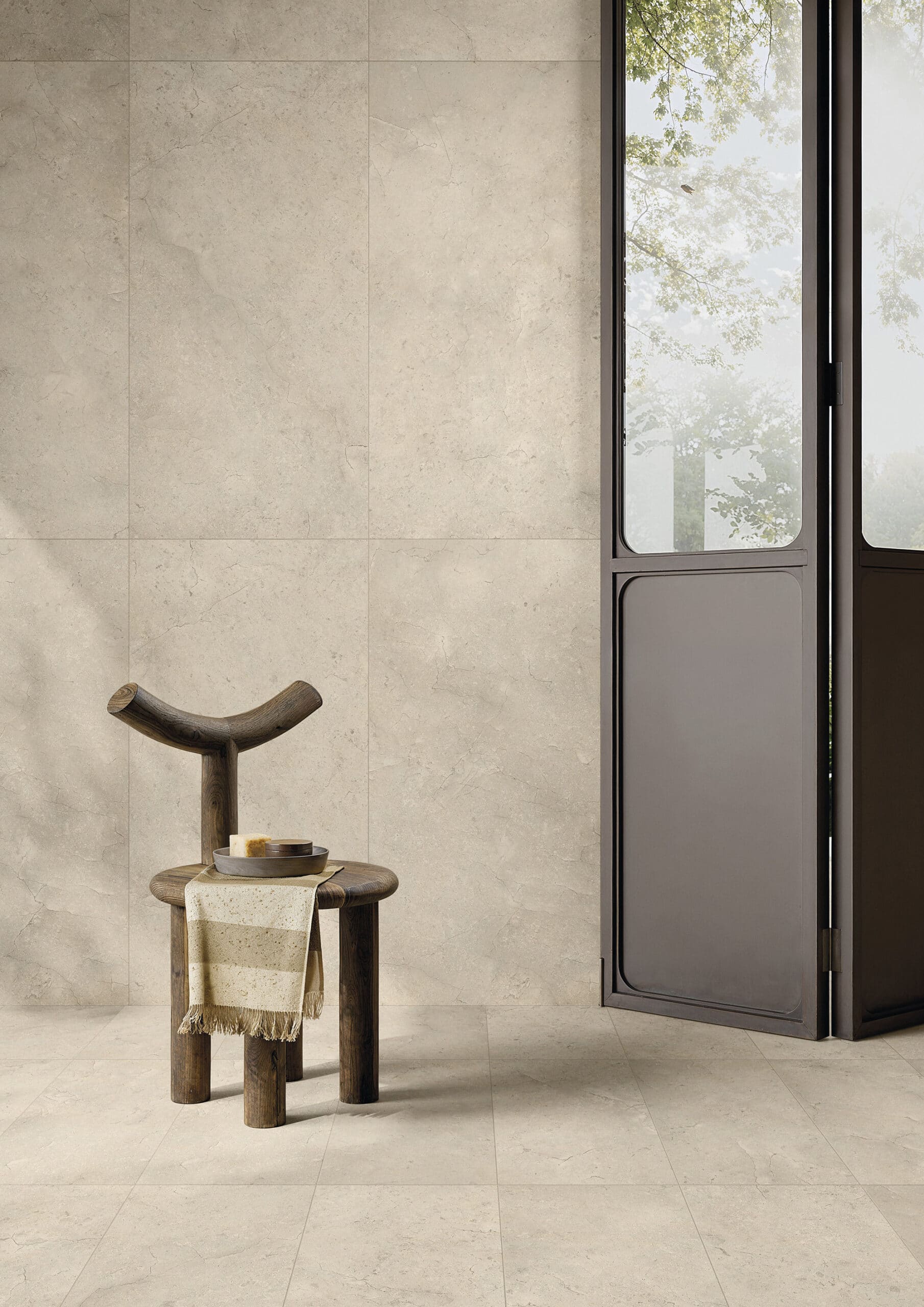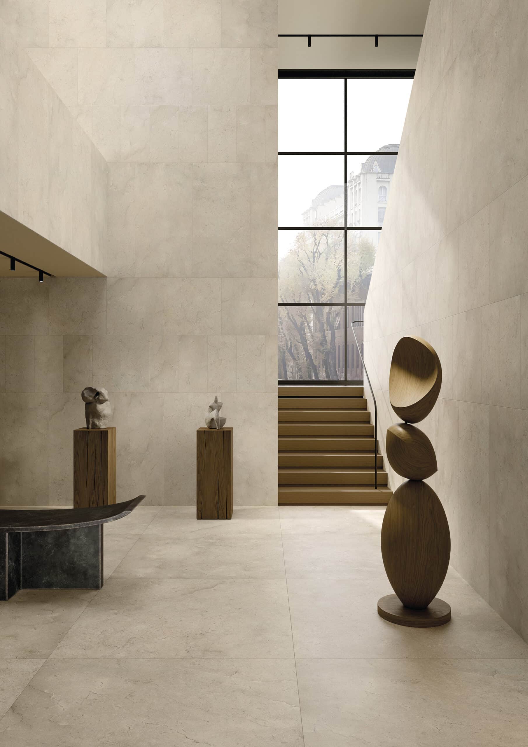Surfaces en grès cérame soigneusement sélectionnées, inspirées de la pierre naturelle et du marbre.