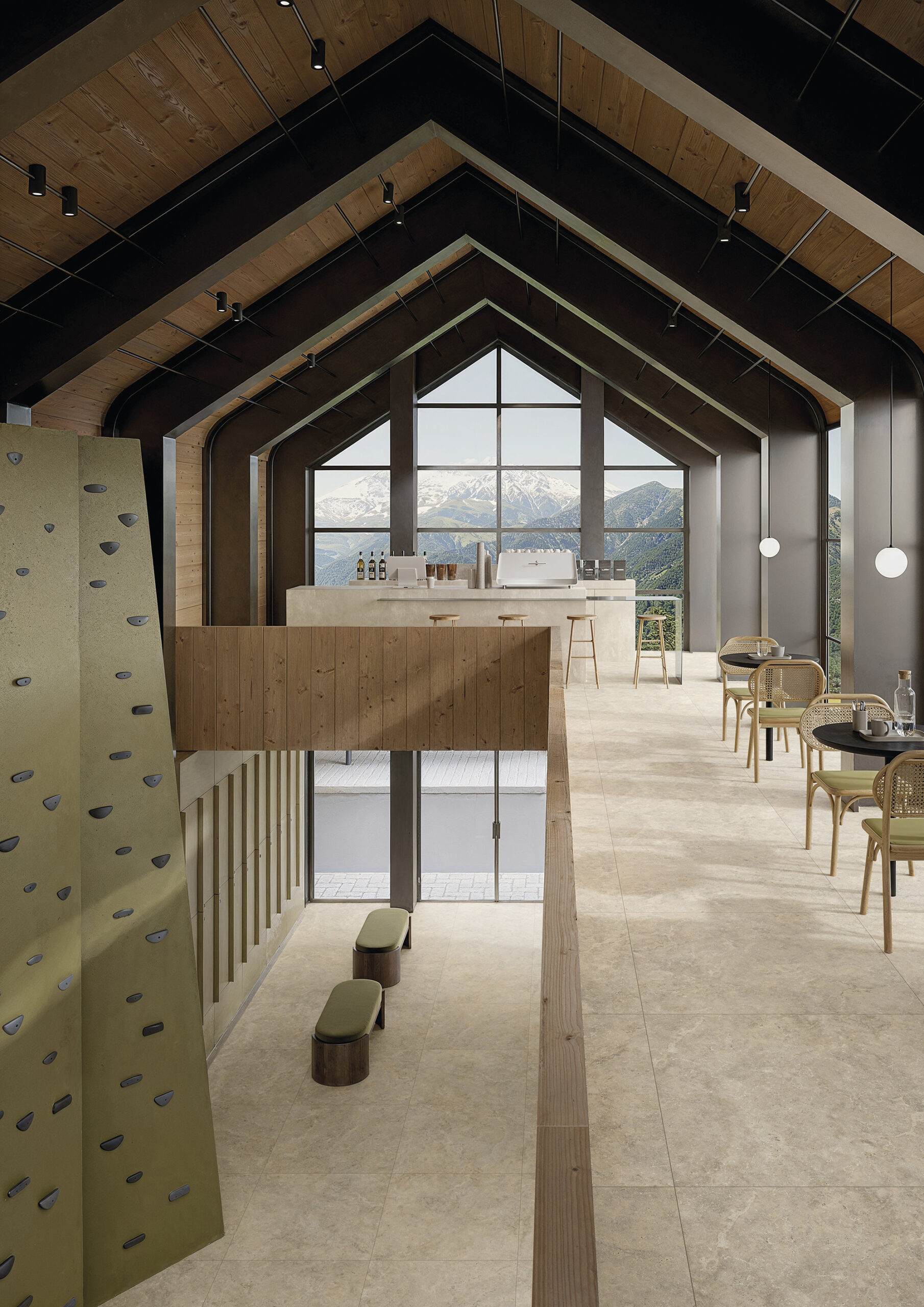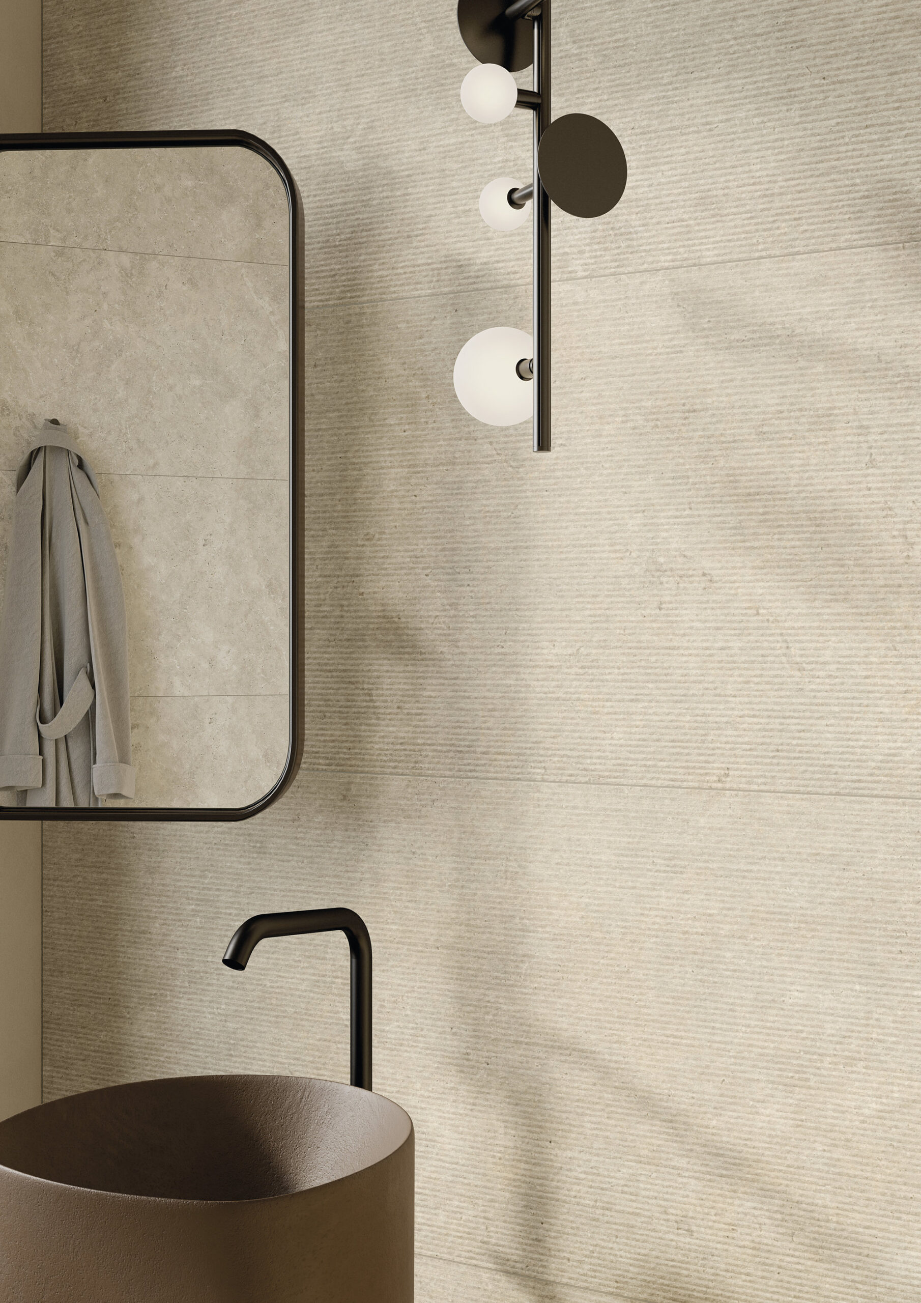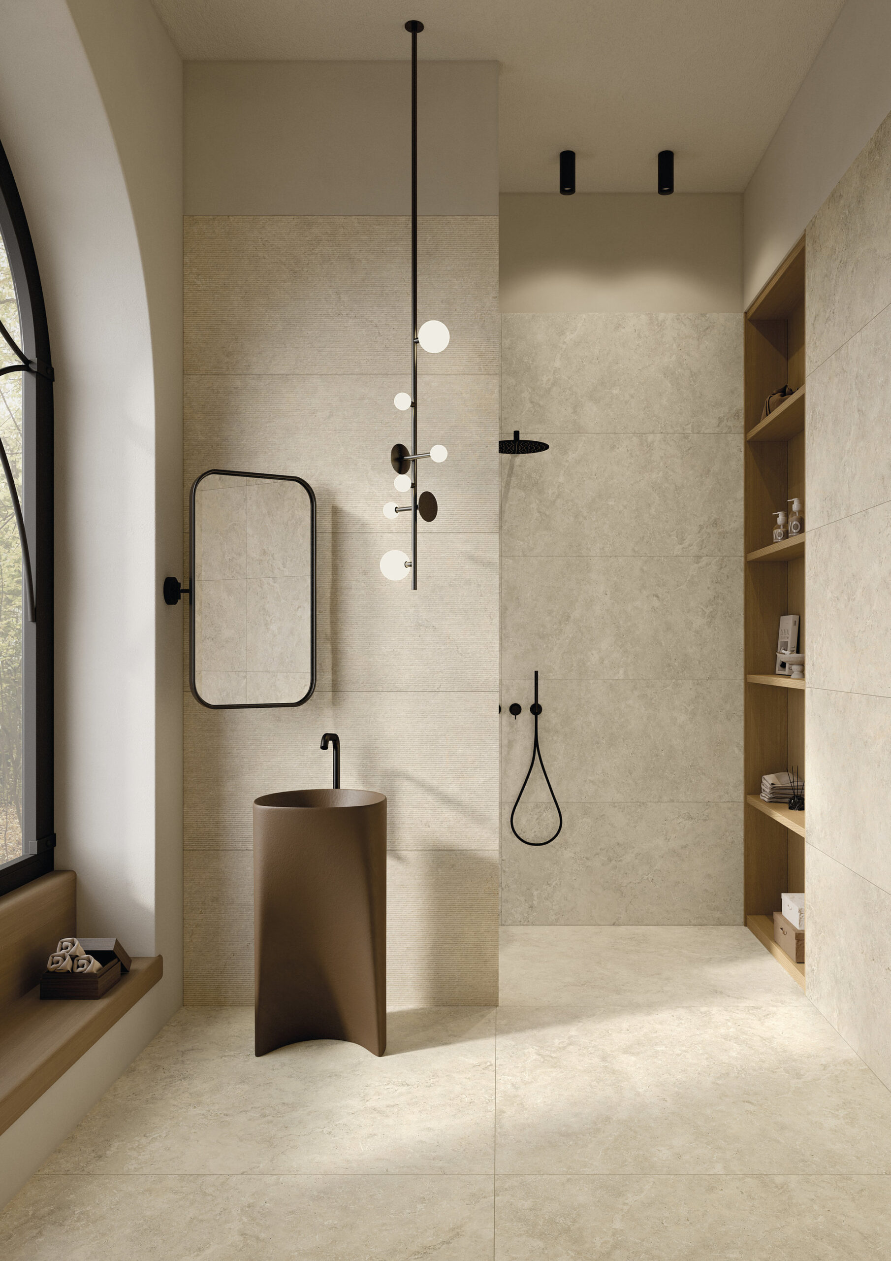Surfaces en grès cérame soigneusement sélectionnées, inspirées de la pierre naturelle et du marbre.